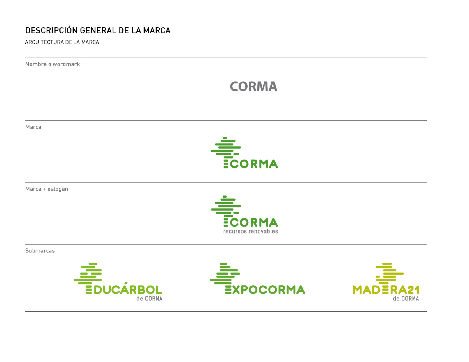 Conception de l’identité de marque pour CORMA (Corporación Nacional de la Madera) et ses trois sous-marques : Expocorma, Educarbol et Madera21