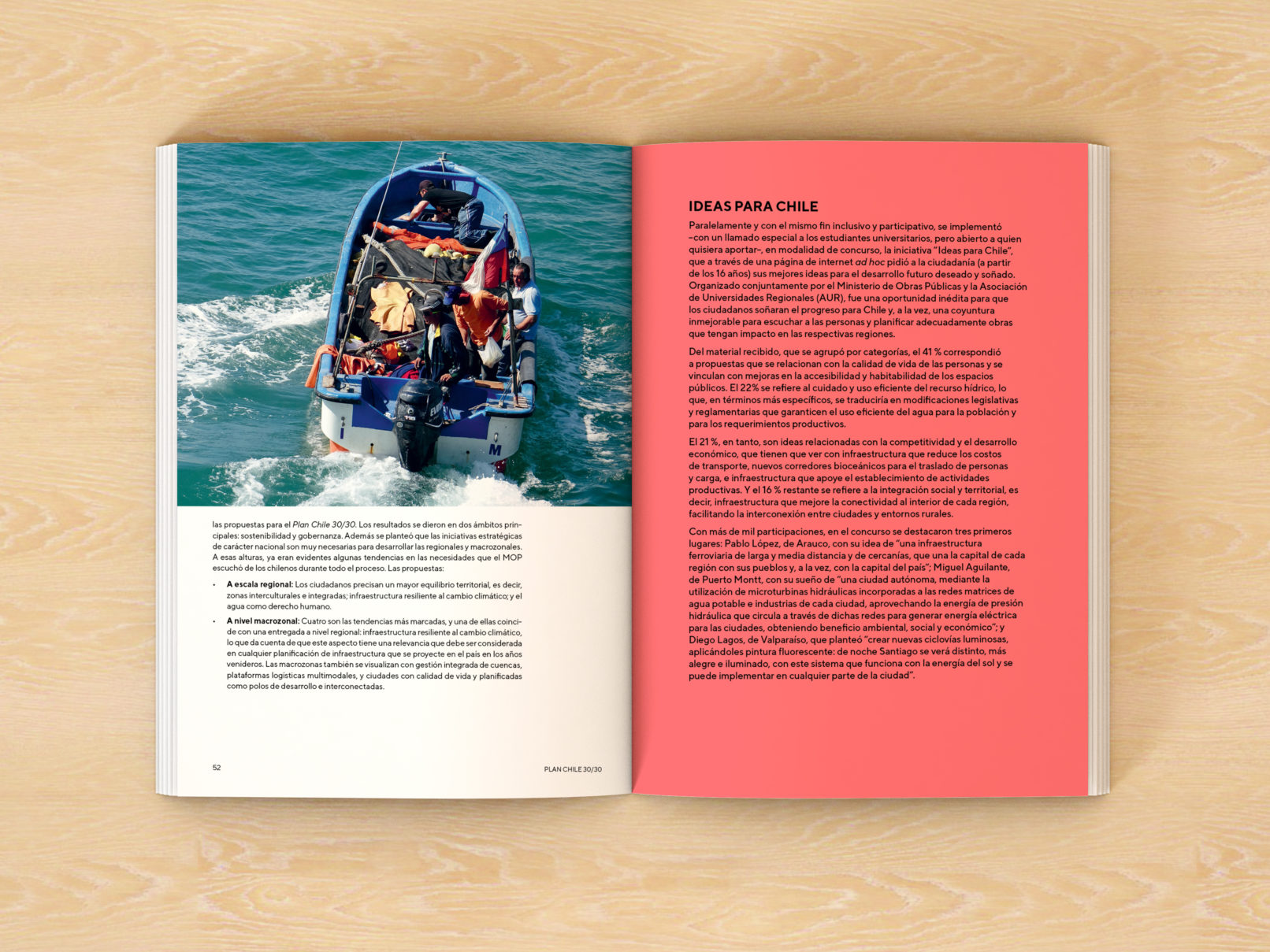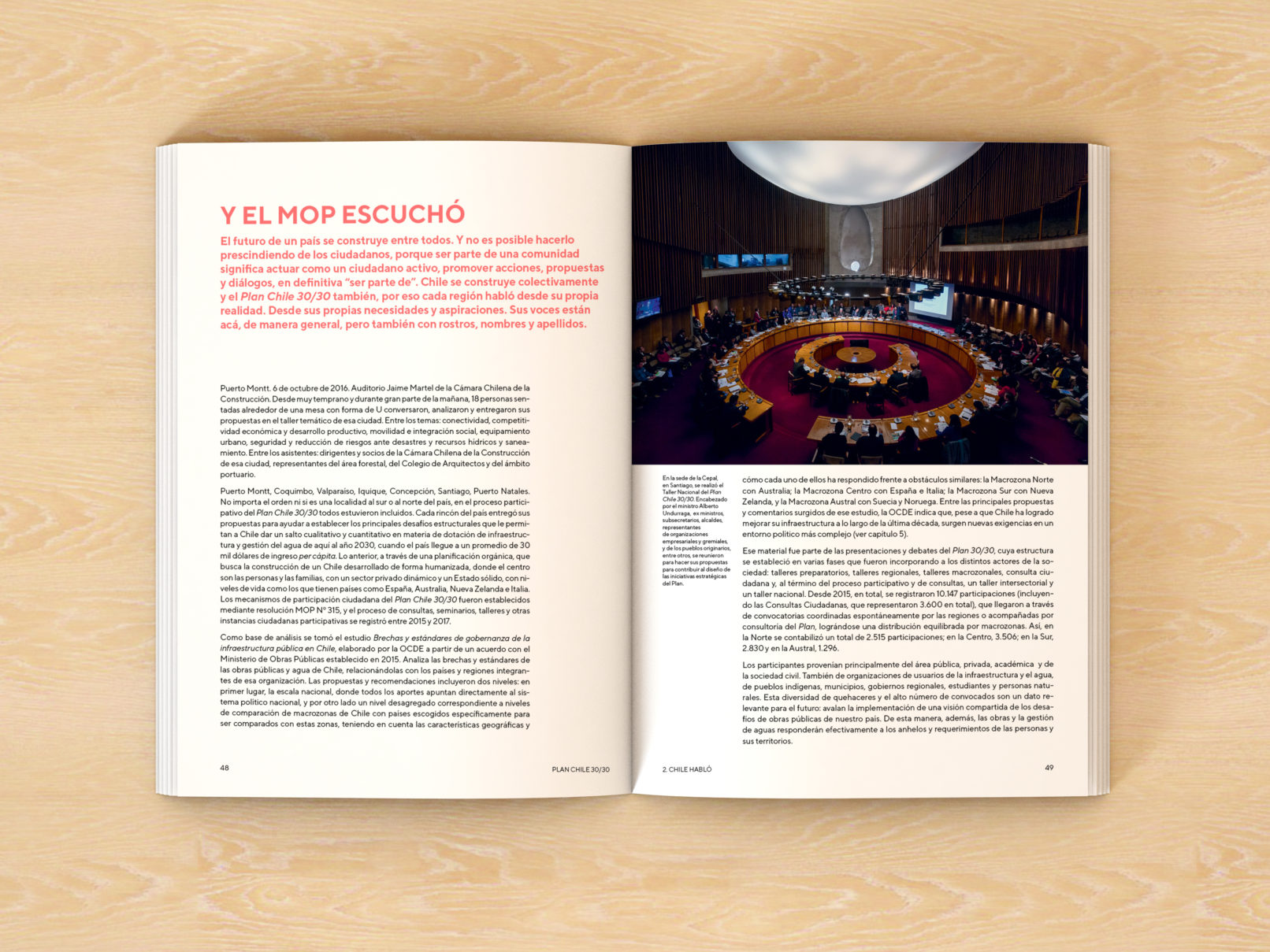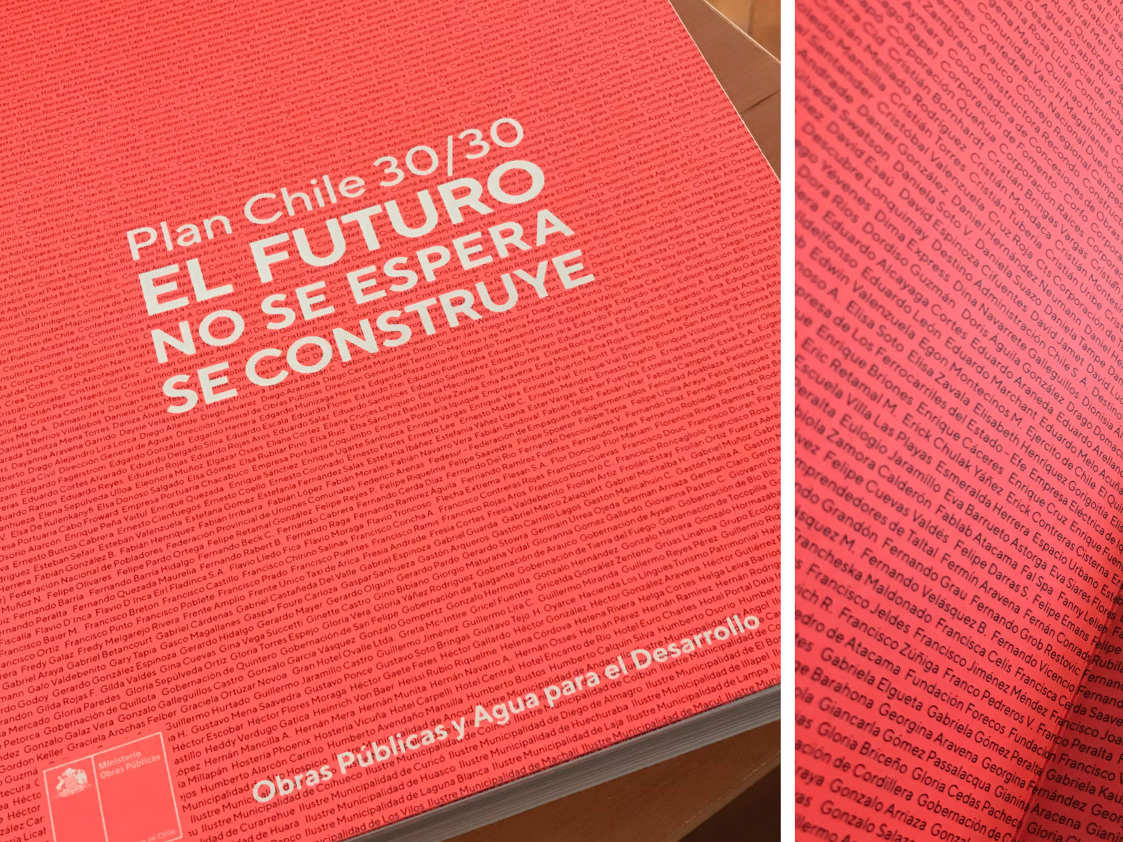 En collaboration avec des représentants des différents secteurs de la société et dans chacune des régions du pays, le ministère des Travaux publics du Chili a élaboré un plan avec les travaux nécessaires imaginant le Chili de l’année 2030, qui a été transformé en ce livre : Plan Chili 30 /30.