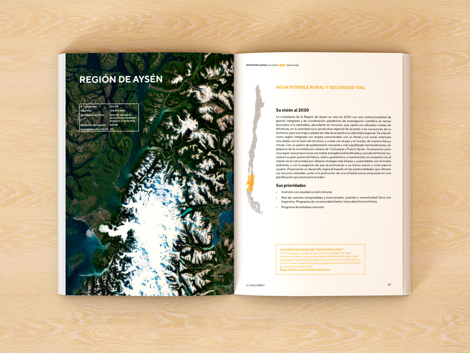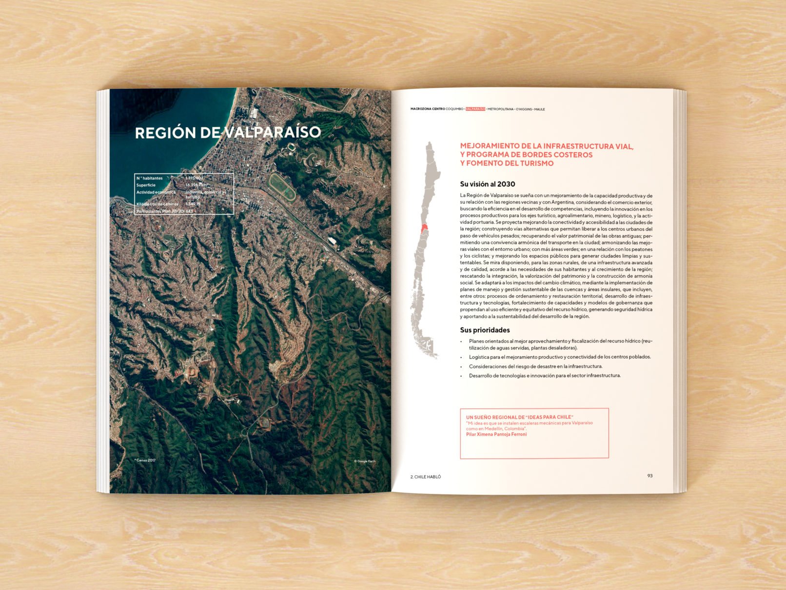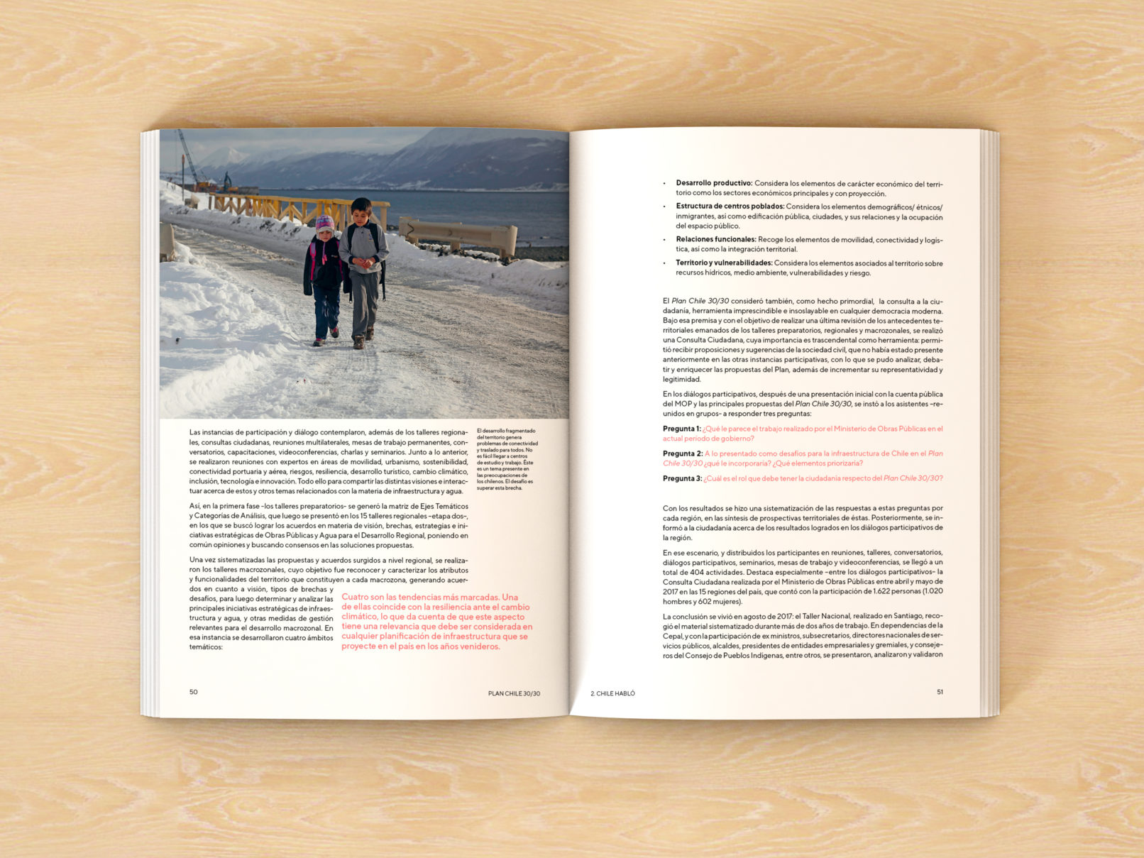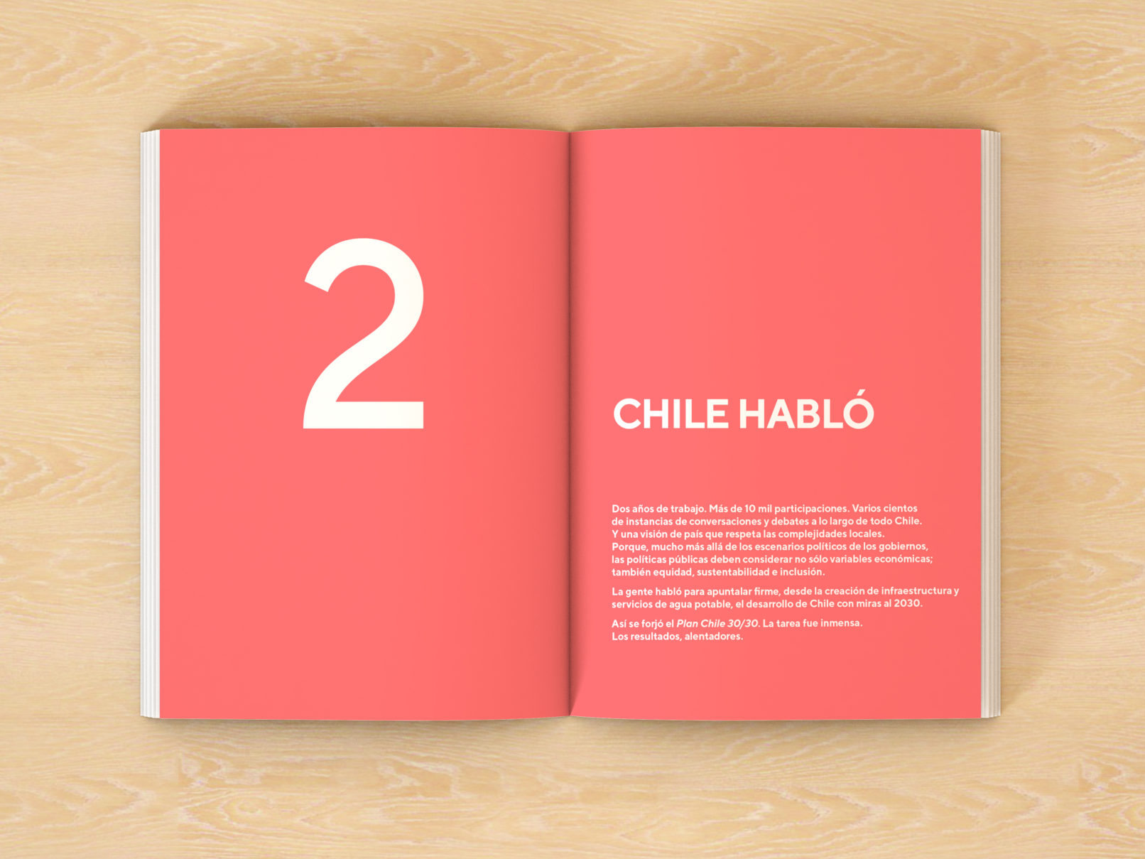 En collaboration avec des représentants des différents secteurs de la société et dans chacune des régions du pays, le ministère des Travaux publics du Chili a élaboré un plan avec les travaux nécessaires imaginant le Chili de l’année 2030, qui a été transformé en ce livre : Plan Chili 30 /30.